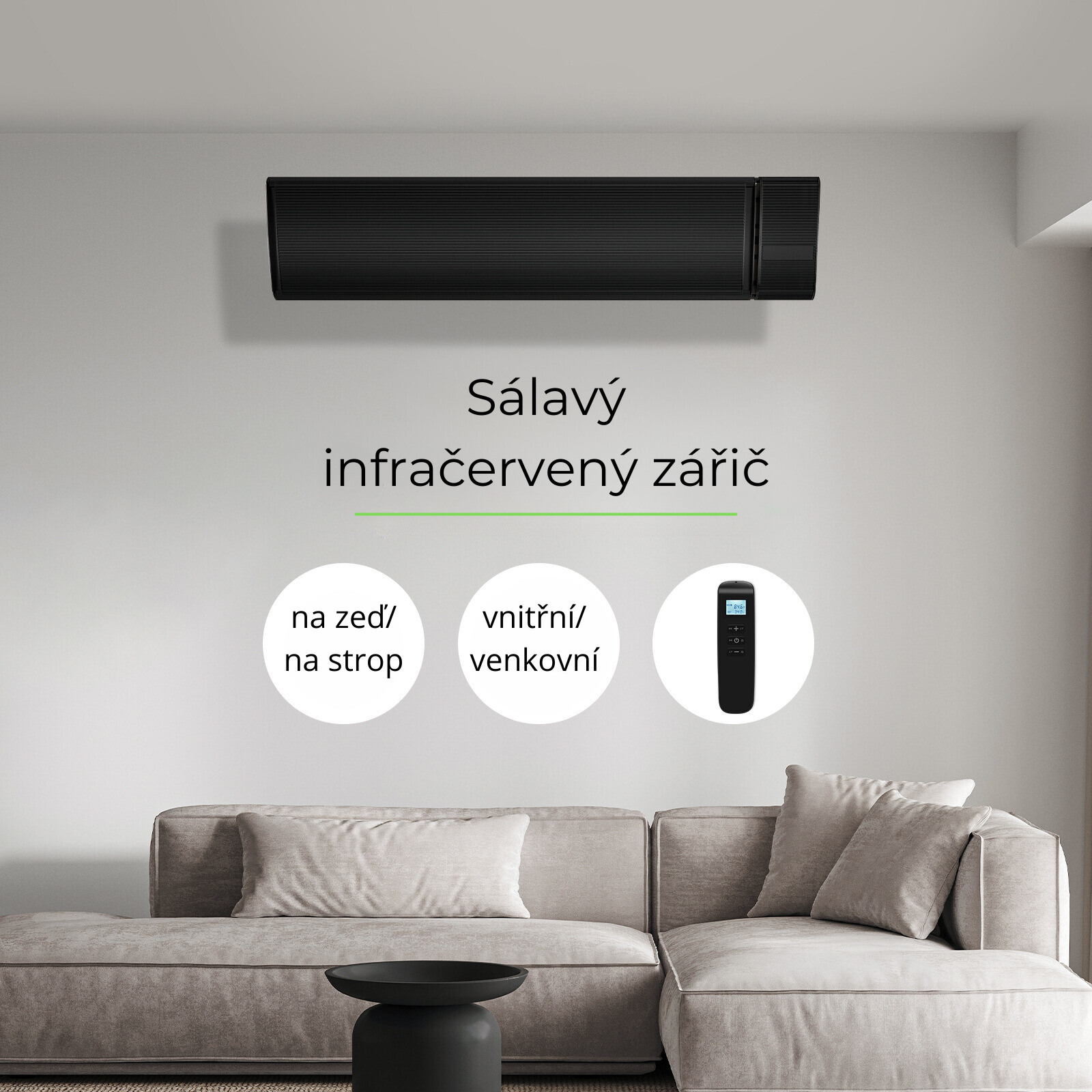 - ByeCold | Sálavý infrazářič | Vnitřní i venkovní | 1000W | 71x22 cm | WiFi termostat | Dálkový ovladač | Výhřevnost 20m² | IGT2-CG0602